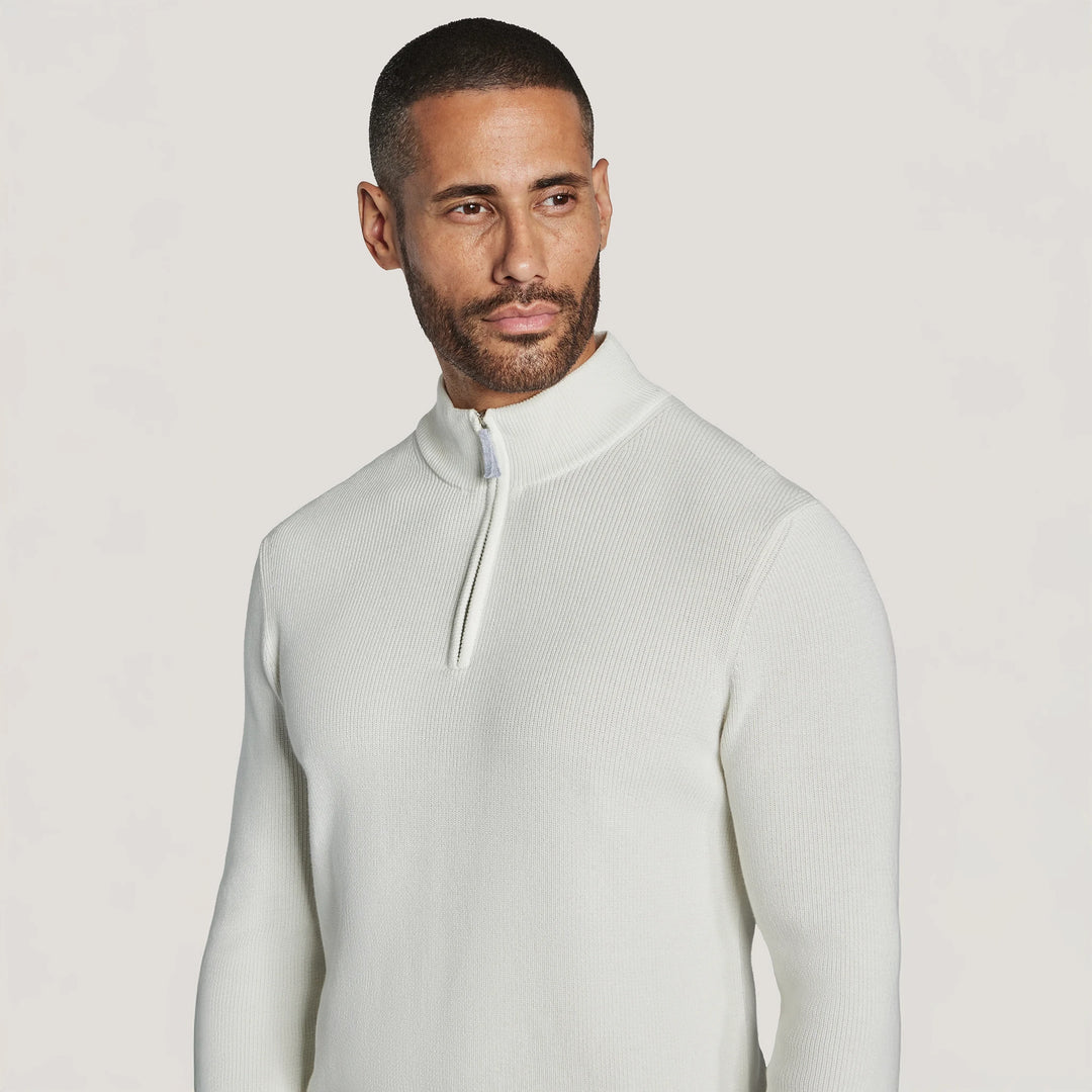 Ecru Solid Quarter Zip Cotton Sweater - Jack Victor