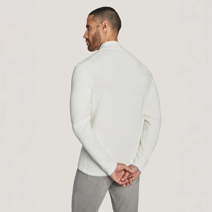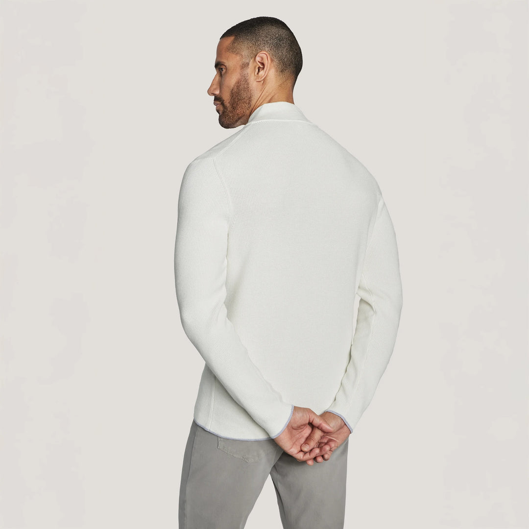 The Solid Quarter Zip Sweater is crafted from premium combed cotton for a soft feel and a zero-pill finish, ensuring lasting quality. The fully fashioned knit provides a lightweight yet cozy fit, while the set-in shoulder design offers a tailored look. The mock neck zip collar adds a modern touch, perfect for layering or wearing on its own.