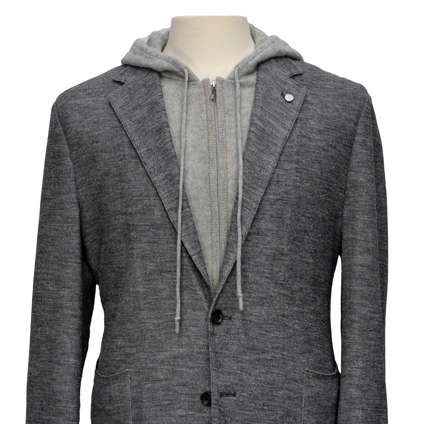 • Single-breasted, two button, notch lapel