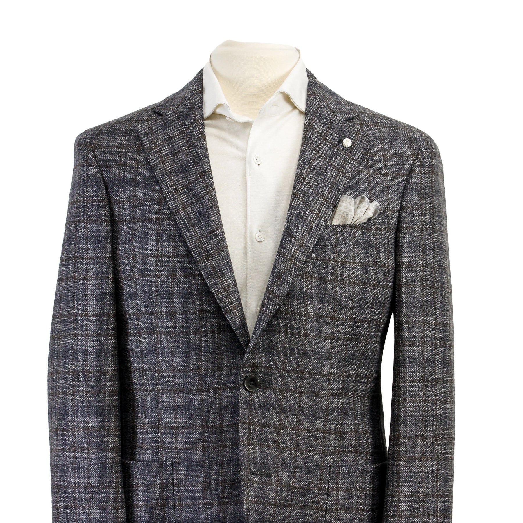 Experience the epitome of style and comfort with the Gray Check Contemporary Fit Sport Jacket by Luigi Bianchi, meticulously crafted in Italy. This versatile jacket showcases a sophisticated gray check pattern and a contemporary fit that effortlessly combines modernity with classic elegance.