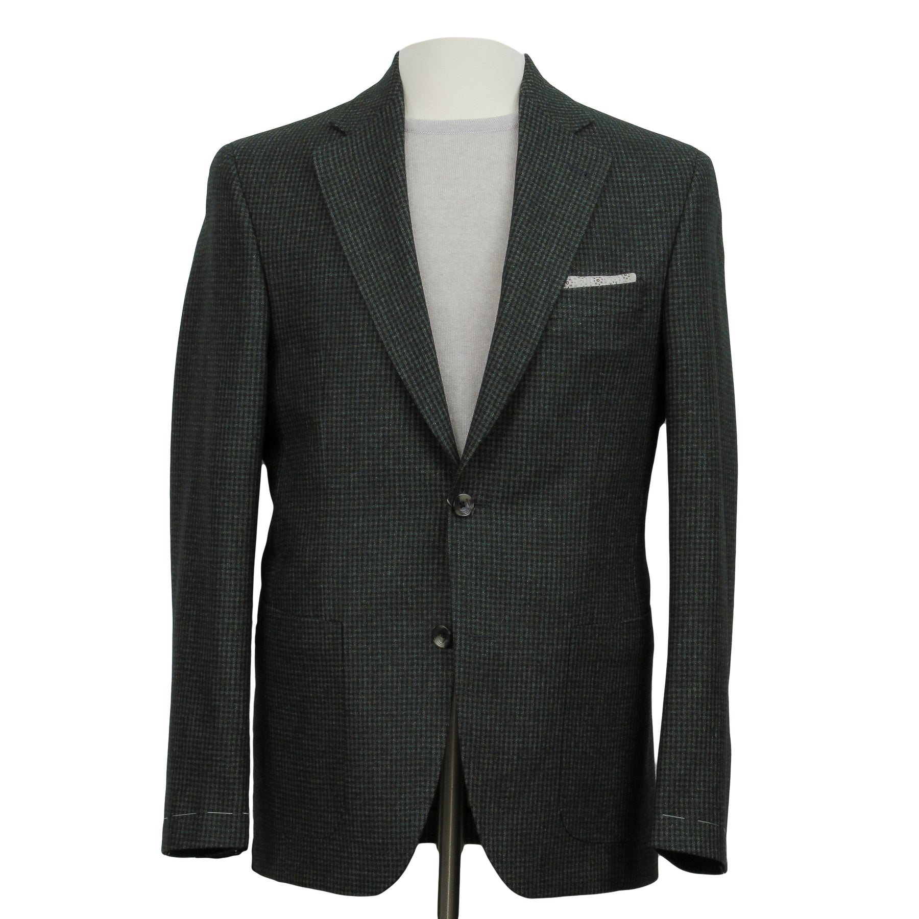 Presented in a forest green hue with a black micro-houndstooth pattern, this jacket can be paired with a wide array of pieces, from polos and knits to dress and casual shirts. It is an adaptable addition to your wardrobe, seamlessly transitioning from jeans to chinos or casual pants. Whether you're wearing it to a relaxed day at the office or dressing up for an evening dinner, this jacket infuses your ensemble with a touch of refined nonchalance.