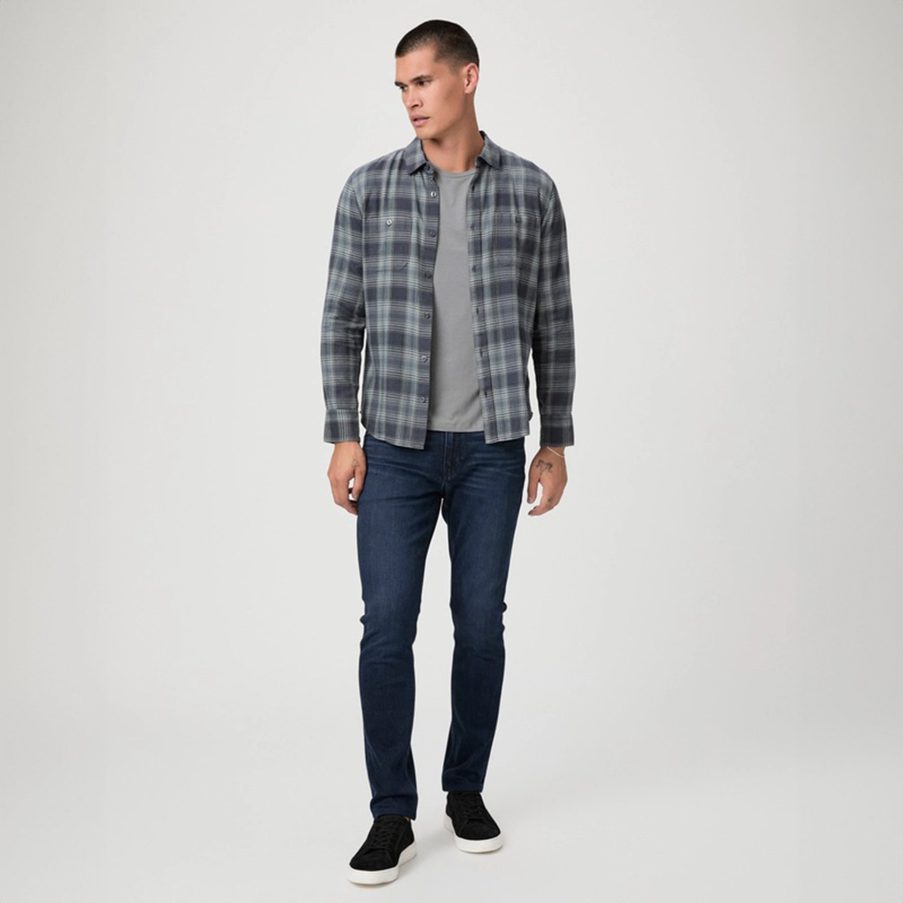 The Lennox fit is designed to hug your body in all the right places, giving you a slim and flattering silhouette. The jeans feature a classic five-pocket design, with a zip fly and button closure, making them easy to wear and style. The signature Paige logo is engraved on the back pocket, adding a touch of elegance to the overall design.