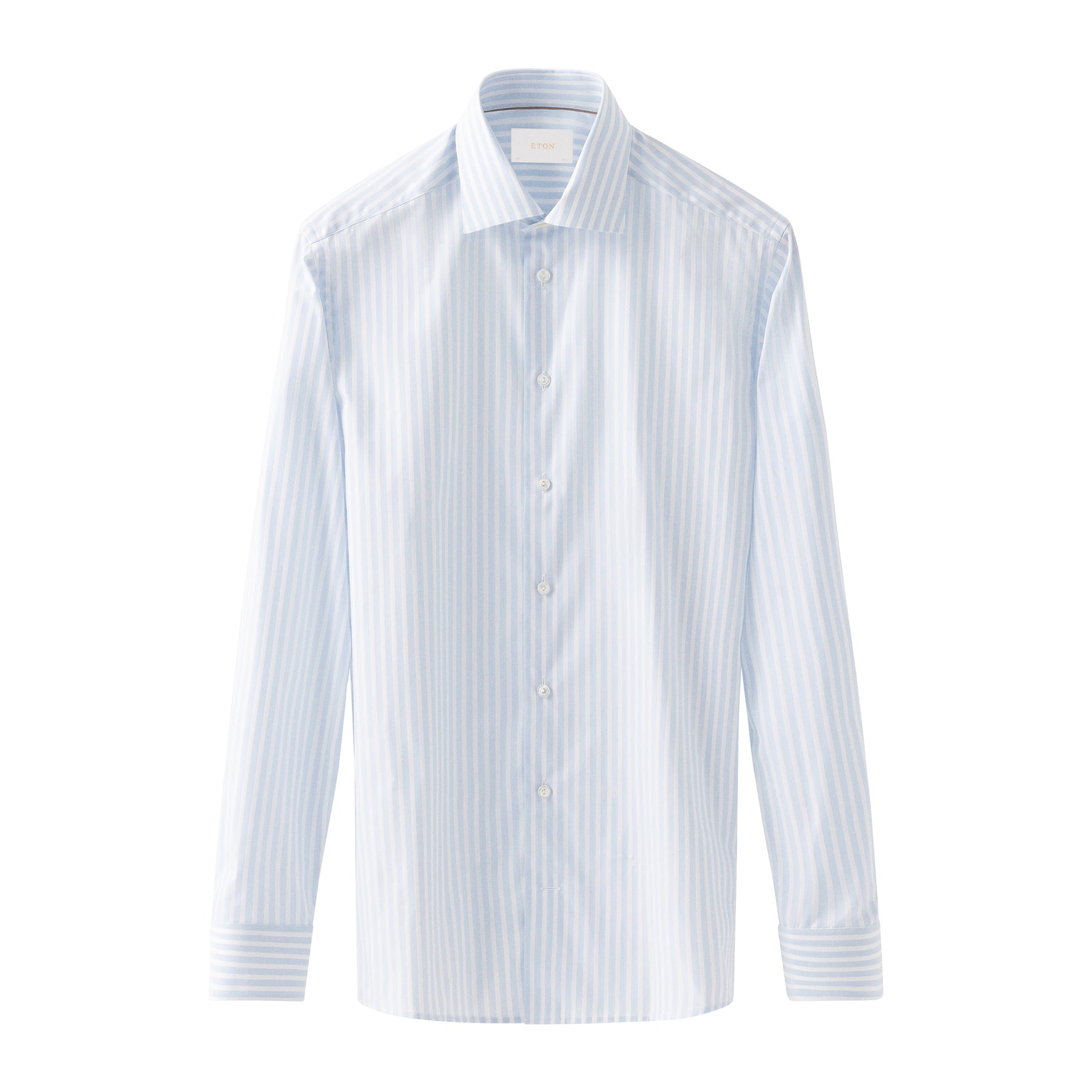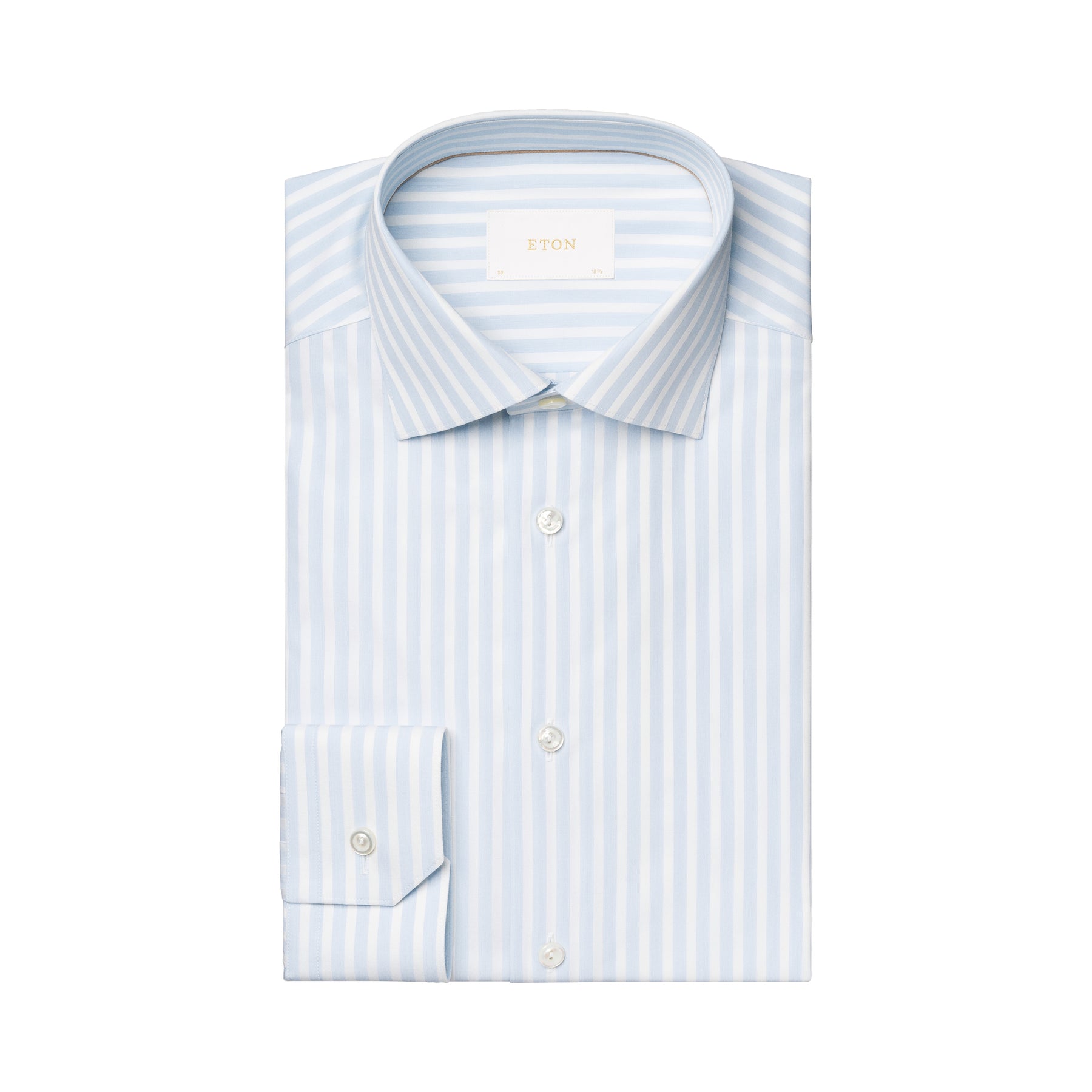 Overall, the Light Blue Bengal Striped Elevated Piqué Cotton Slim Fit Shirt by ETON is a premium-quality piece that will elevate your wardrobe and leave you feeling confident and stylish. Whether you're getting ready for an evening meal or heading to the office, this shirt is sure to make a lasting impression.