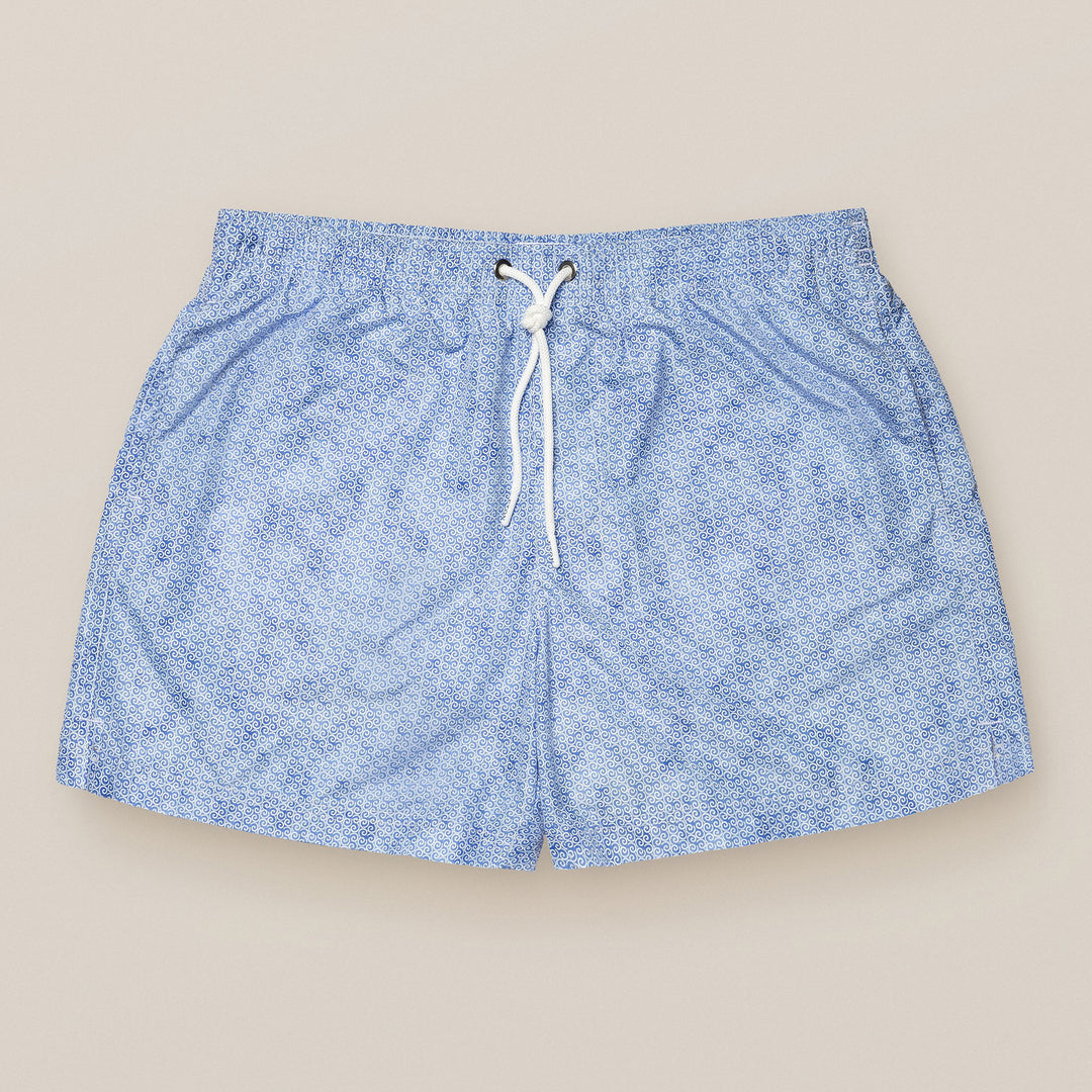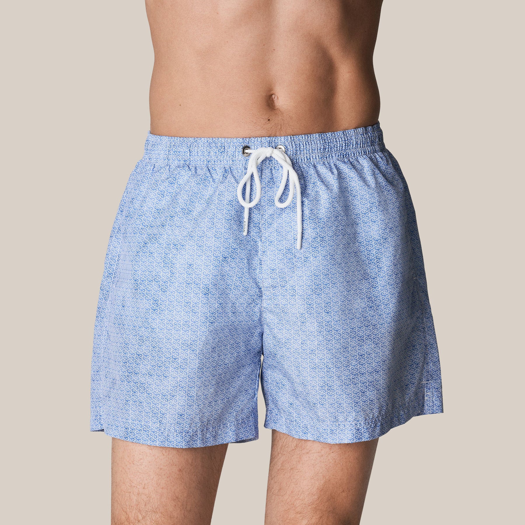 Light Blue Micro Geometric Print Swim Shorts - ETON