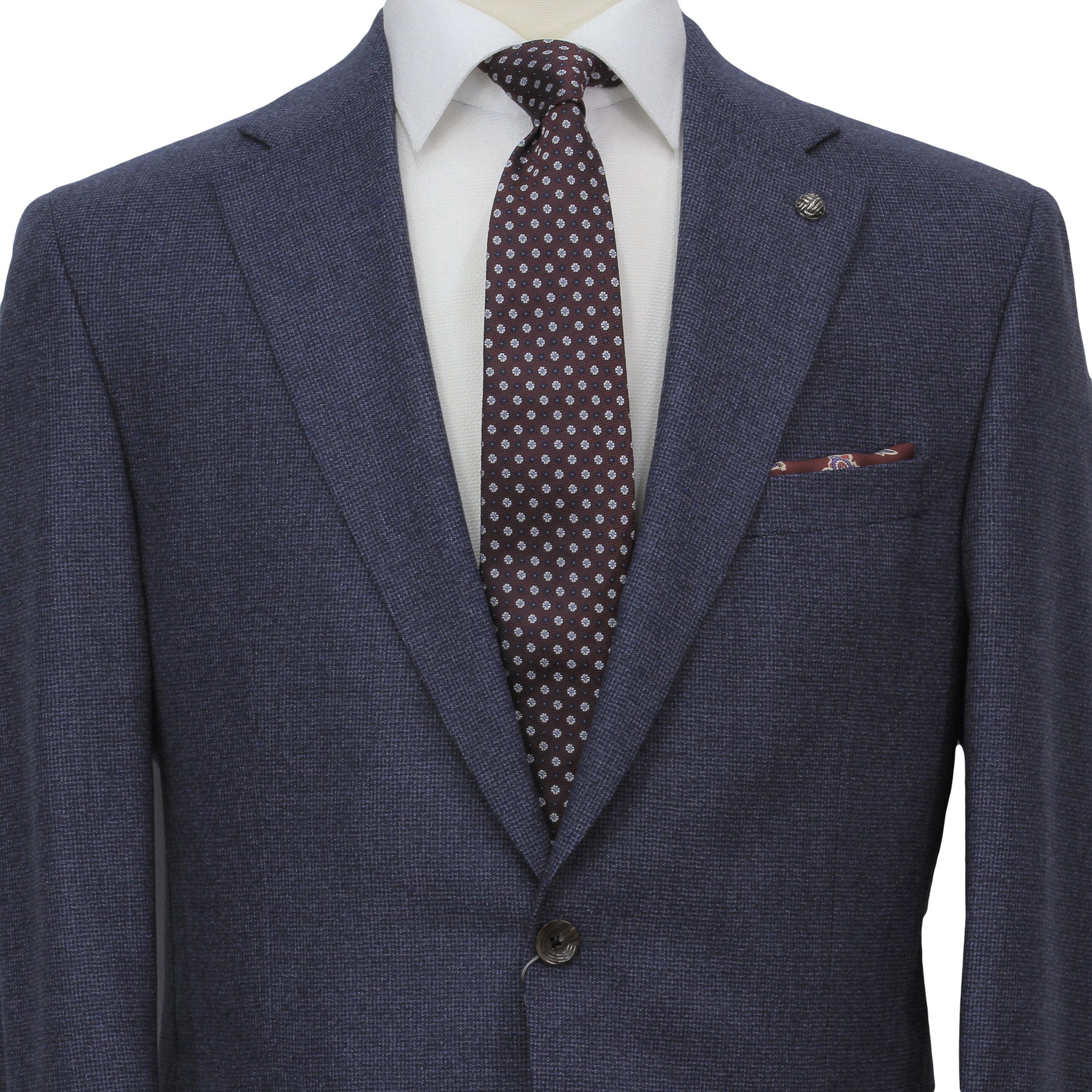 The rich blue hue of the suit with a tonal micro pattern adds a touch of distinction and versatility, making it an ideal choice for a wide range of occasions, from business meetings to social events. Its understated elegance allows you to make a statement without overwhelming your ensemble.