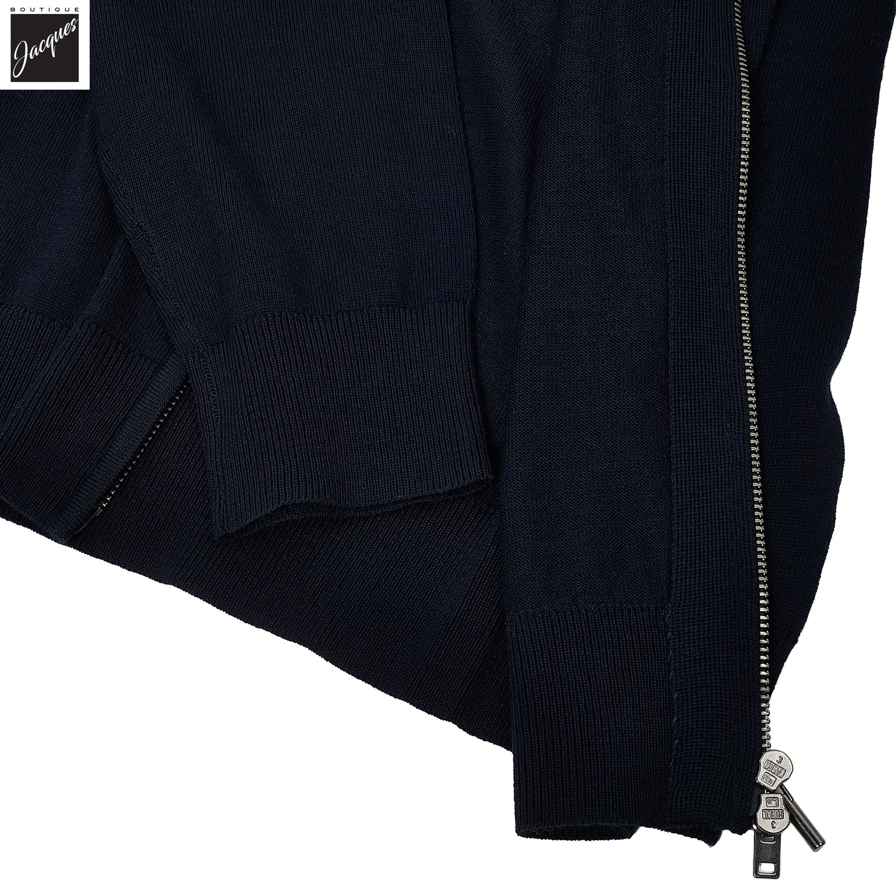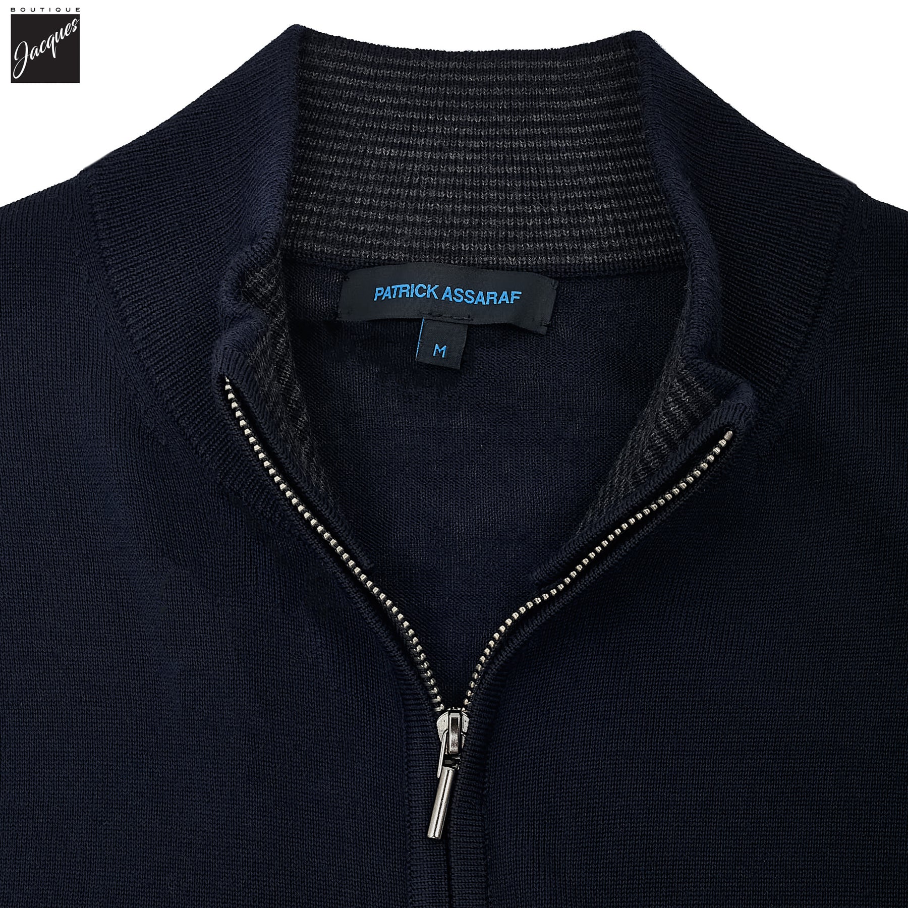 Dive into a world of unmatched luxury and craftsmanship with Boutique Jacques' latest offering – the Midnight Blue 14-gauge extra fine merino full-zip sweater by the unparalleled Patrick Assaraf. This piece marries modern design with timeless elegance, offering a sartorial edge to the contemporary man.