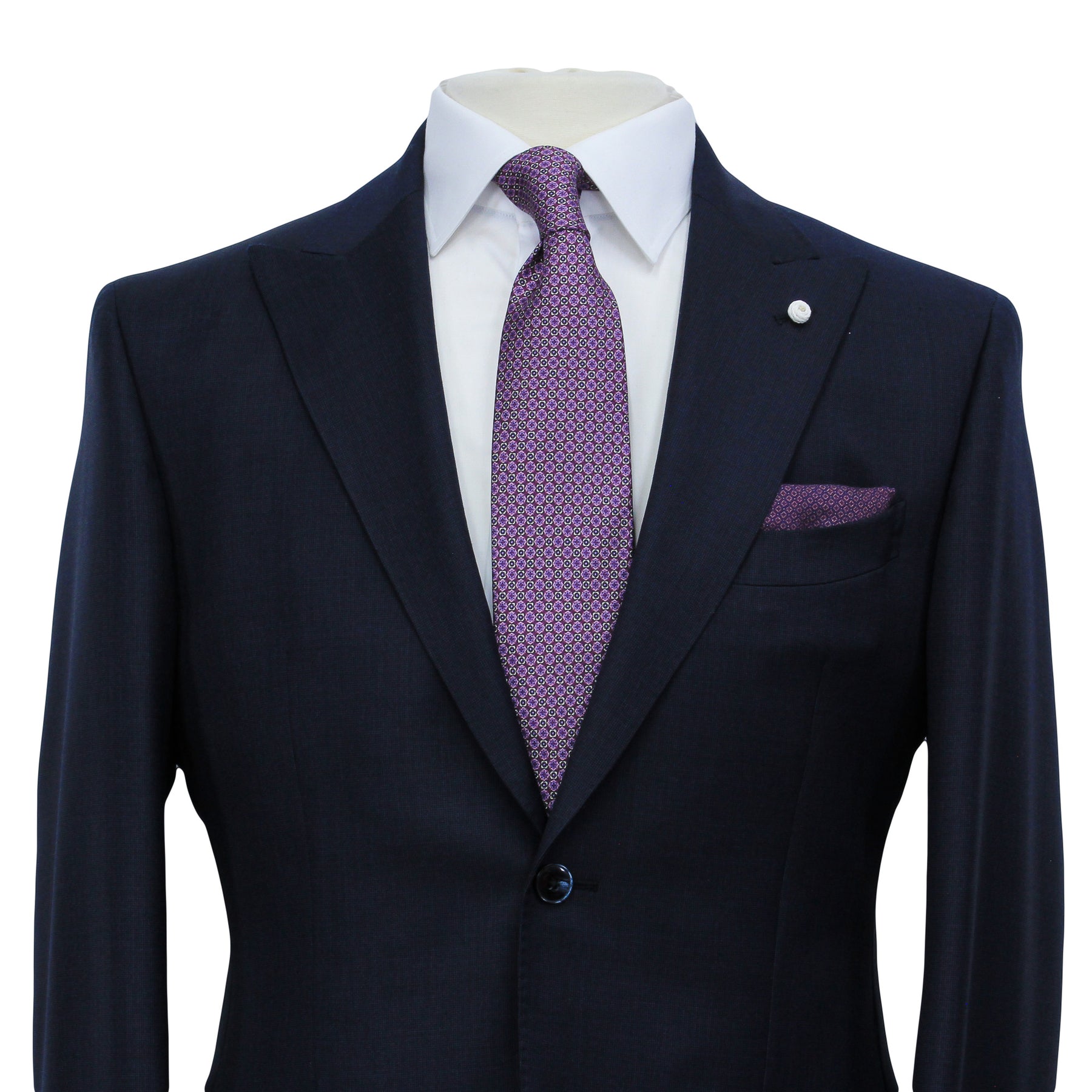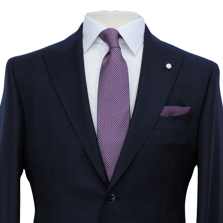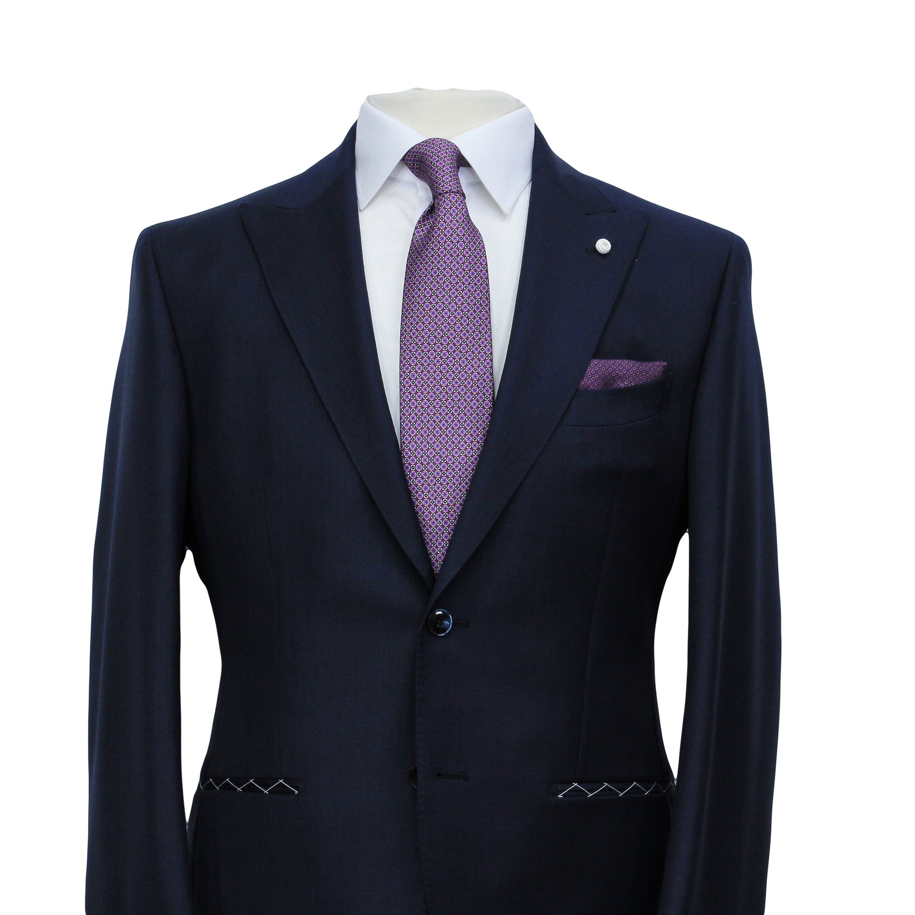 Navy Blue Nailhead Wool Mantua Slim Fit Suit Peak Lapel - Luigi Bianchi