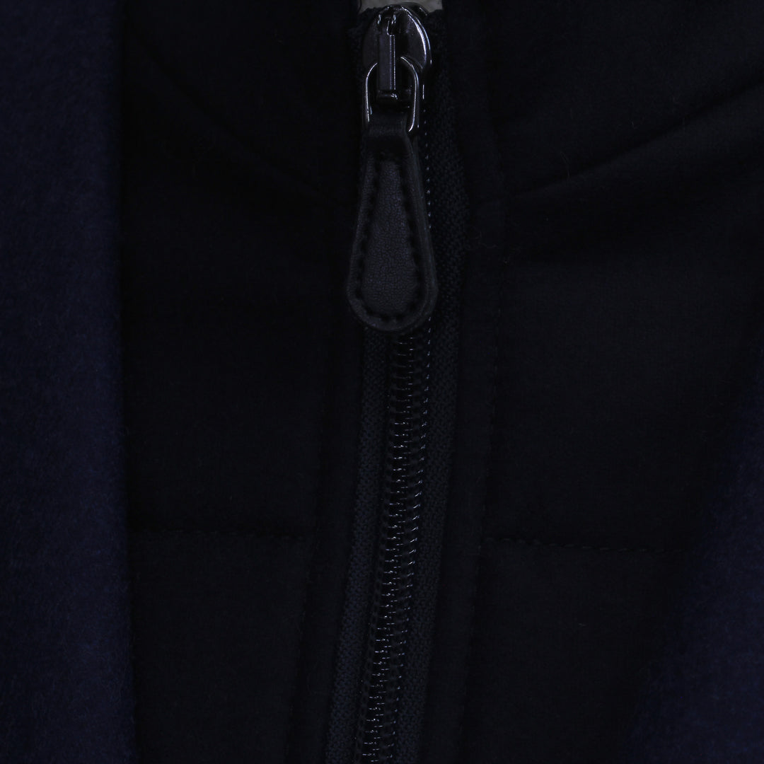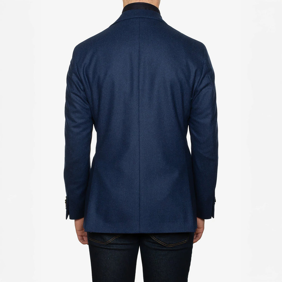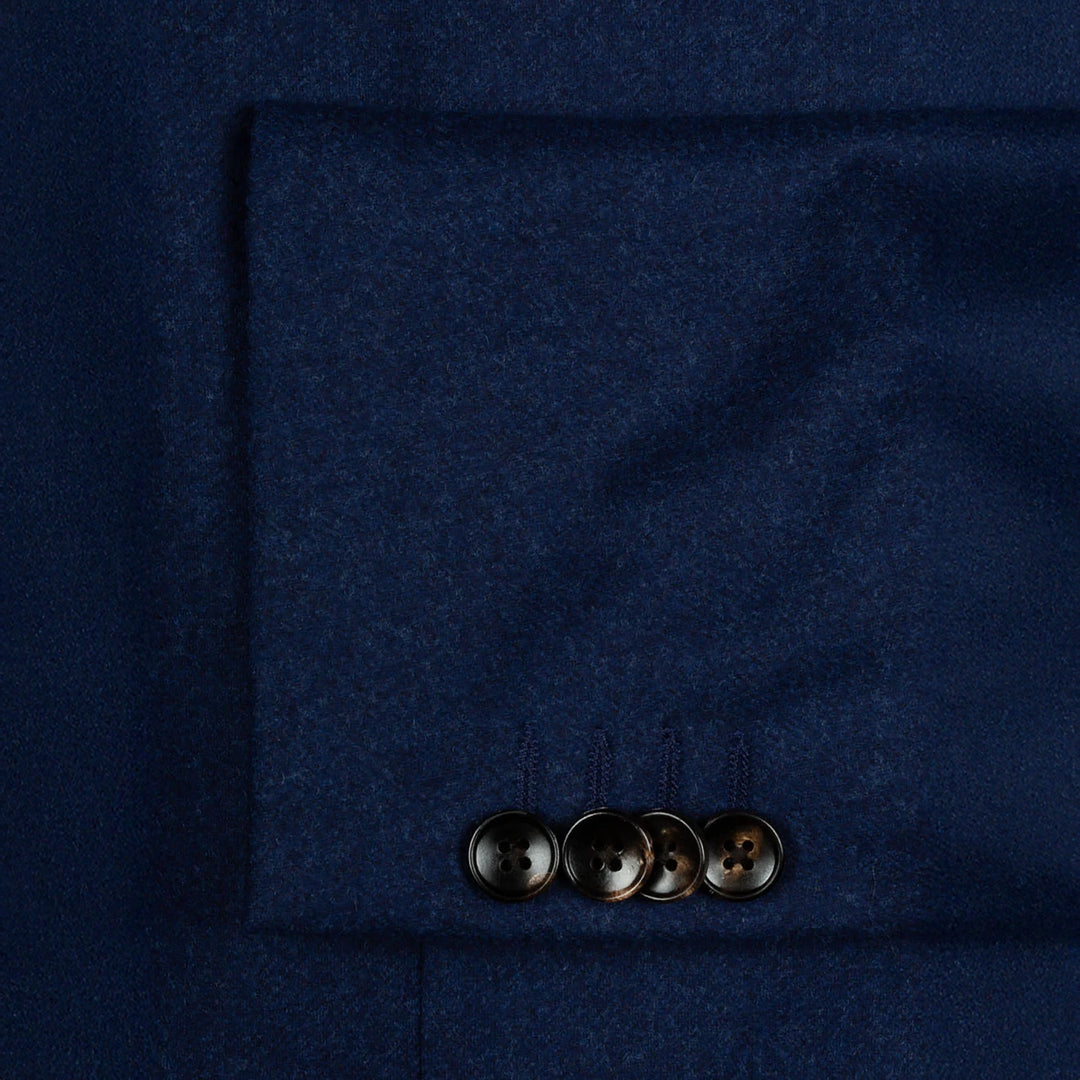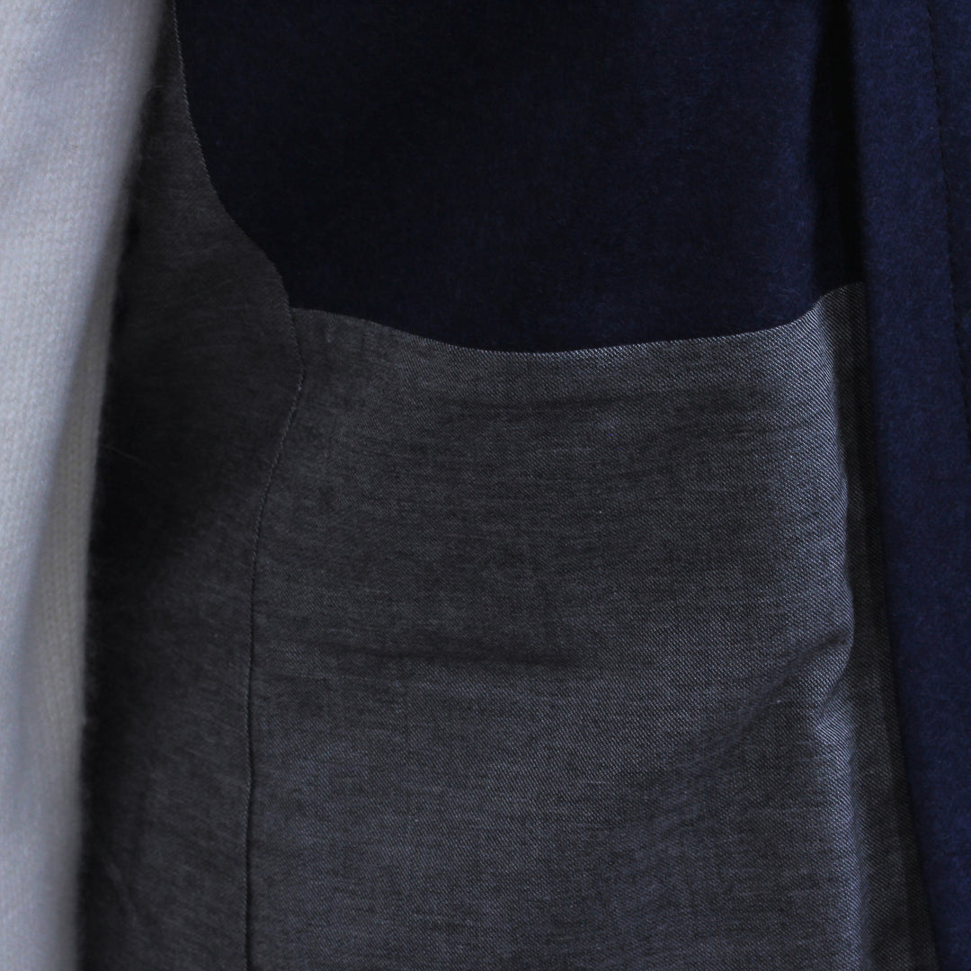 This jacket has been made in Italy with a beautiful wool fabric. This fabric is warm yet breathable for the cooler months, and it features a flannel-like texture. The removable tonal blue bib gives the wearer the option to wear this jacket as an outerwear piece, or remove it and use it as a regular sport jacket.