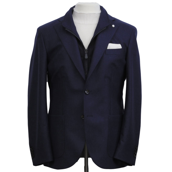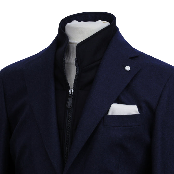 Royal Blue Solid Wool Hybrid Sport Jacket with Bib - Luigi Bianchi