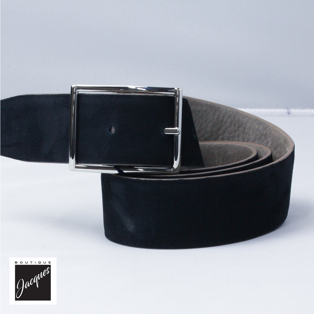 This elegant and modern suede belt is easy to wear with formal trousers or a pair of denim, their dual tone making them an excellently versatile piece for anyone's wardrobe.