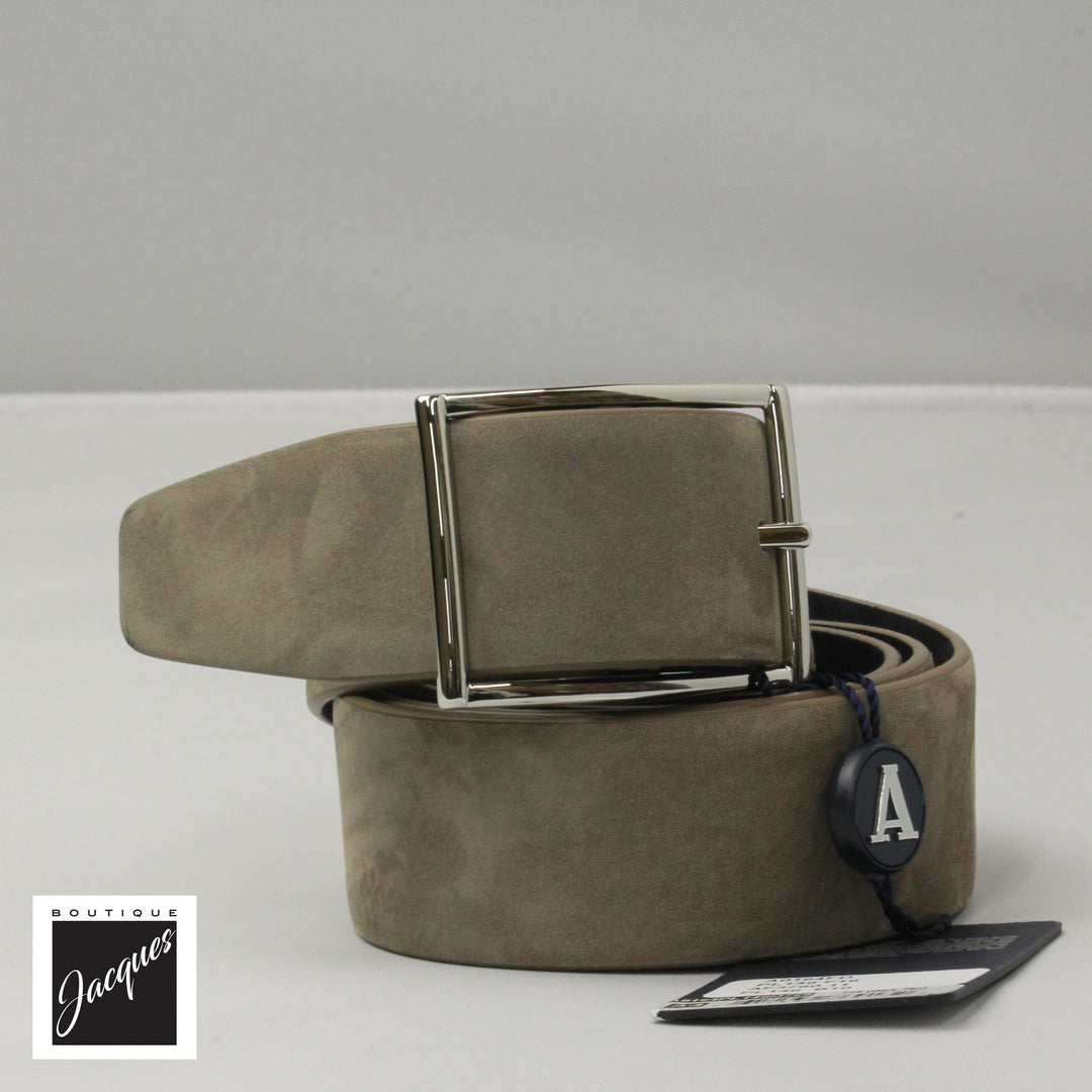 Taupe and Navy Reversible Nubuck Suede Leather Belt - Anderson's
