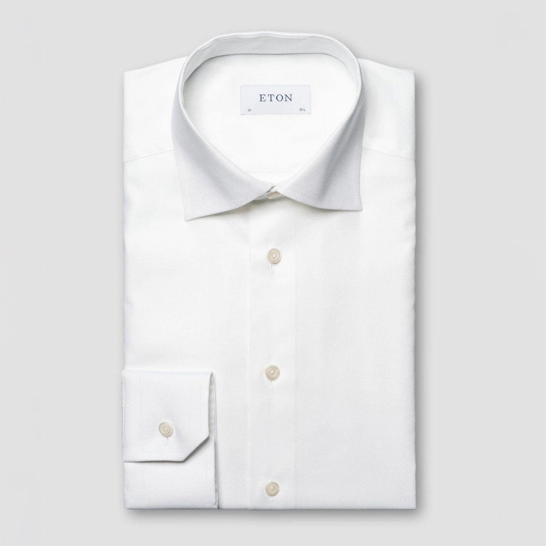 White Semi Solid Cotton-Tencel Contemporary Fit Shirt - ETON