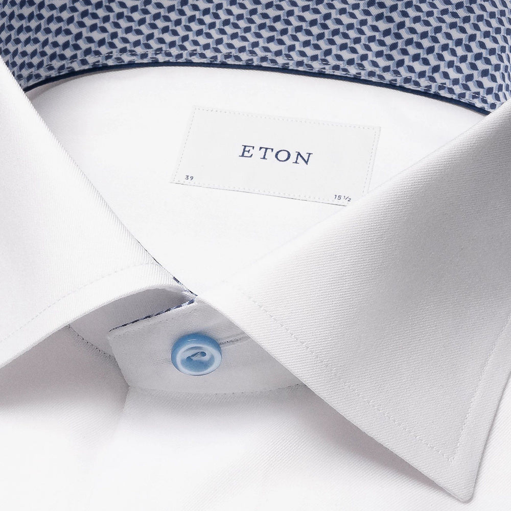 Whether you're dressing up for a formal event or dressing down for a more casual outing, the White Solid Geometric Effect Signature Twill Contemporary Fit Shirt by ETON is the perfect choice.