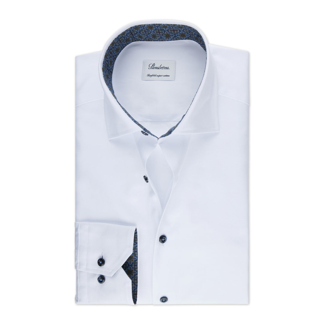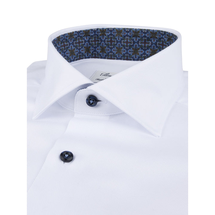 White w/ Blue Contrast Textured Twill Fitted Body Shirt - Stenströms