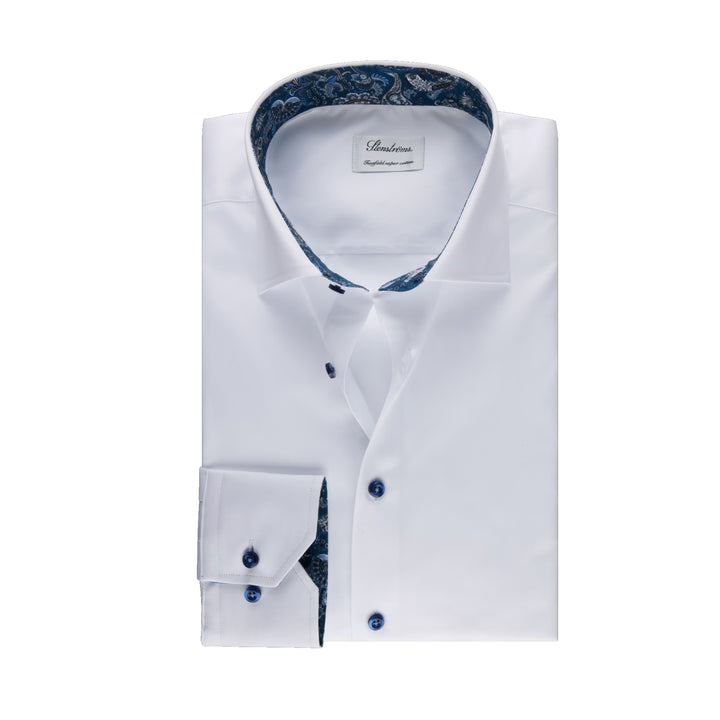 White w/ Navy Contrast Twill Fitted Body Shirt - Stenströms