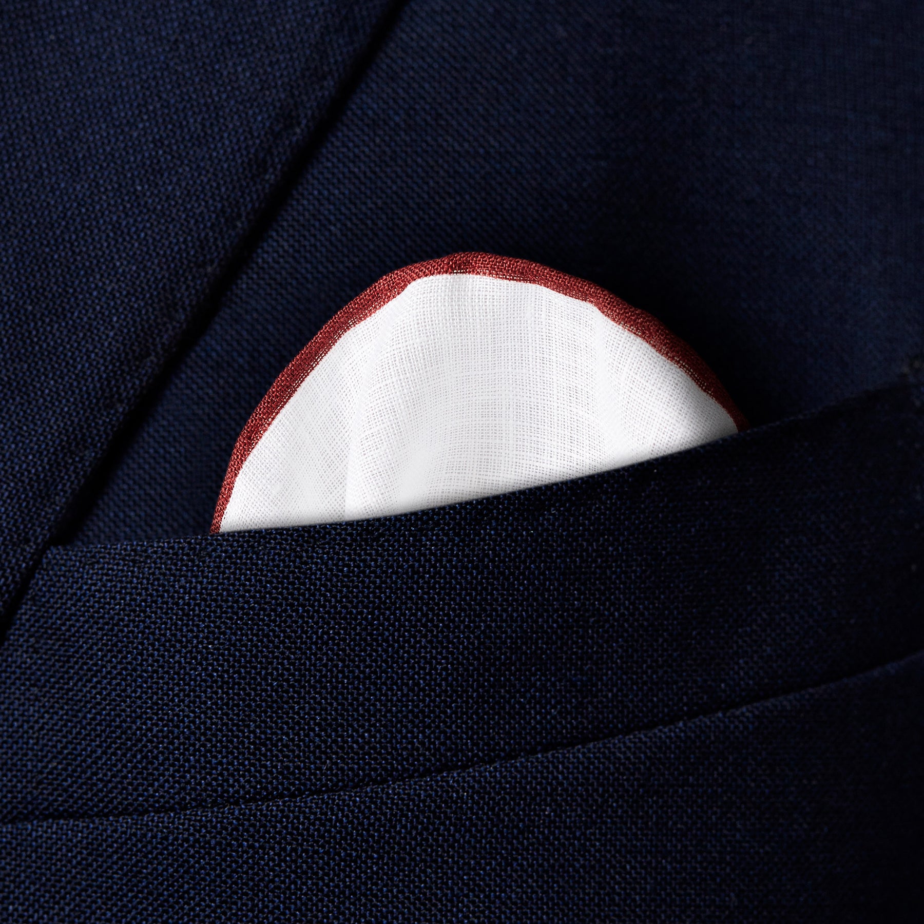 A crisp pocket square that completes any outfit. Made of prime quality linen with hand-rolled edges. Available in a variety of edge colors.